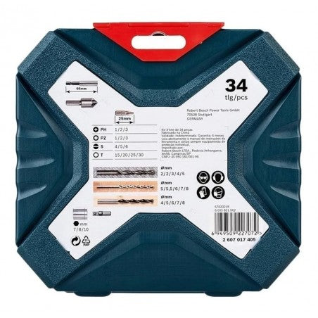 Kit Set Brocas Puntas Set X-line 34 pz Madera Metal Concreto 2610038613, Bosch.