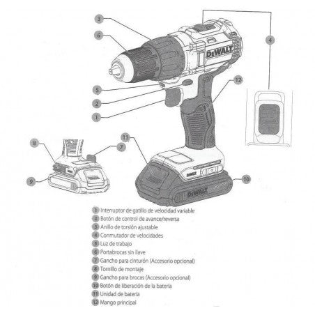 Taladro Rotomartillo 20V+ Bolsa + 2 Baterías DCD778D2 DeWalt